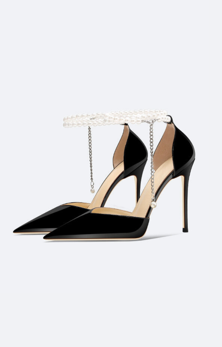 BLACK ANKLE PEARL PROTOCOL HEELS