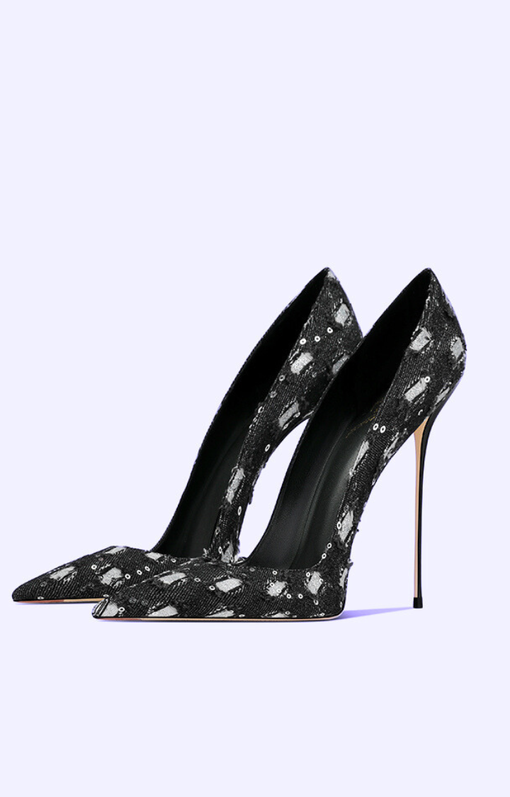 SaleSTARLIT BITE SEQUIN STILETTO HEELS - CRYSTAL SKY