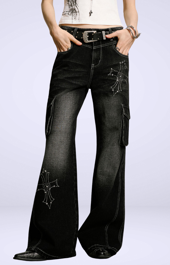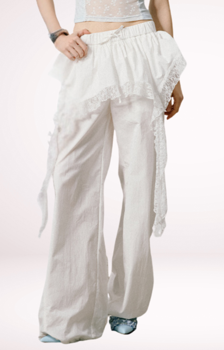 SaleLACE TIERED SKIRT CARGO PANTS IN ETHEREAL CHAOS LACE