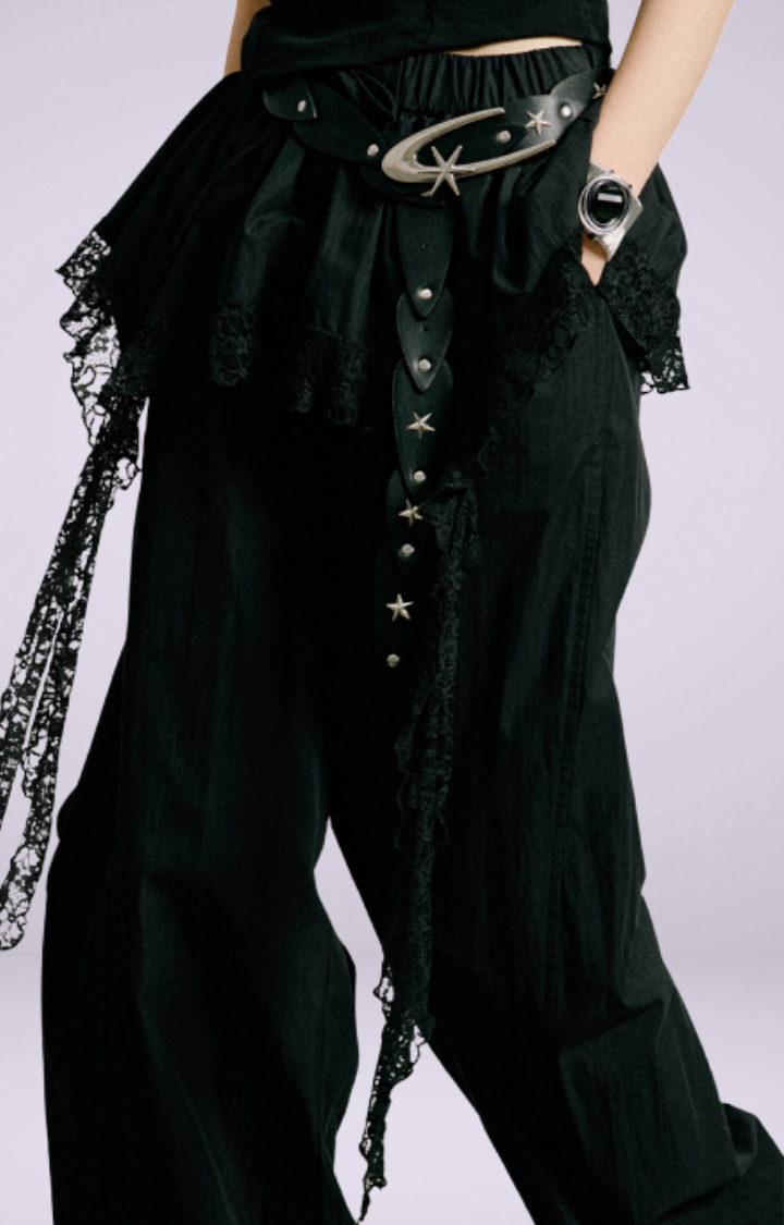 SaleLACE TIERED SKIRT CARGO PANTS IN GOTHIC REBEL LACE