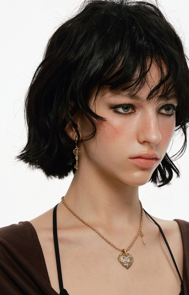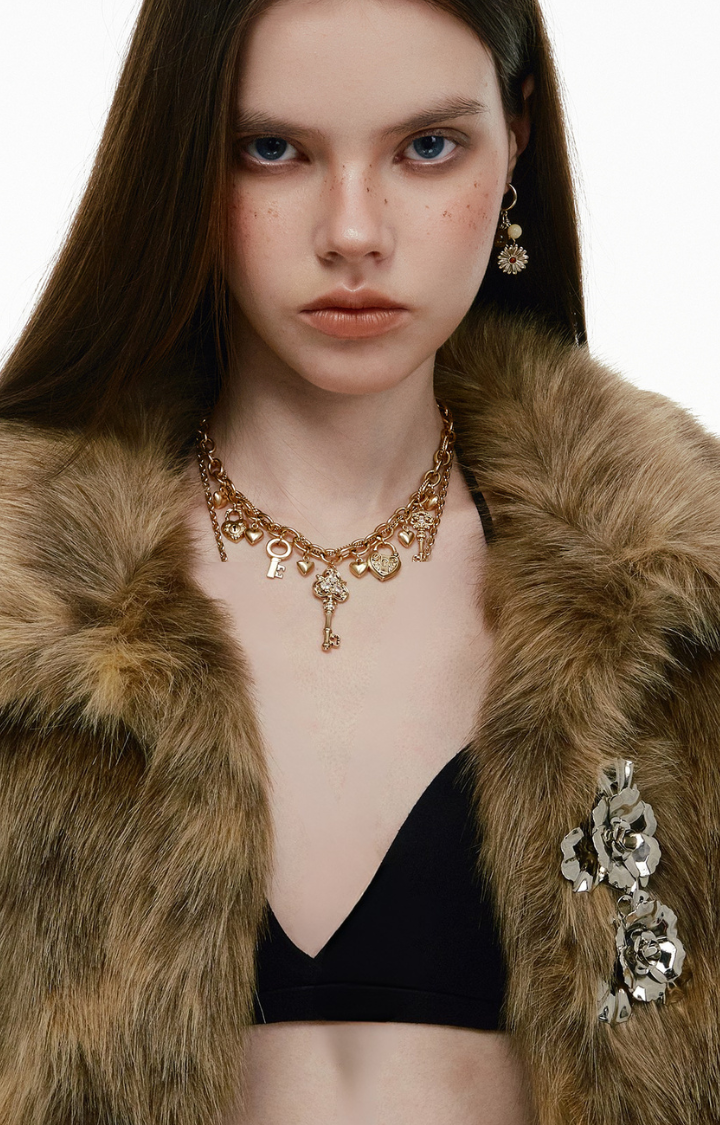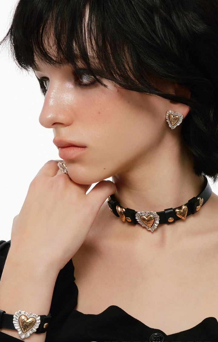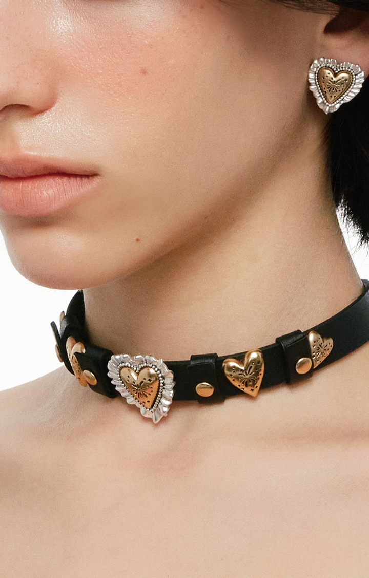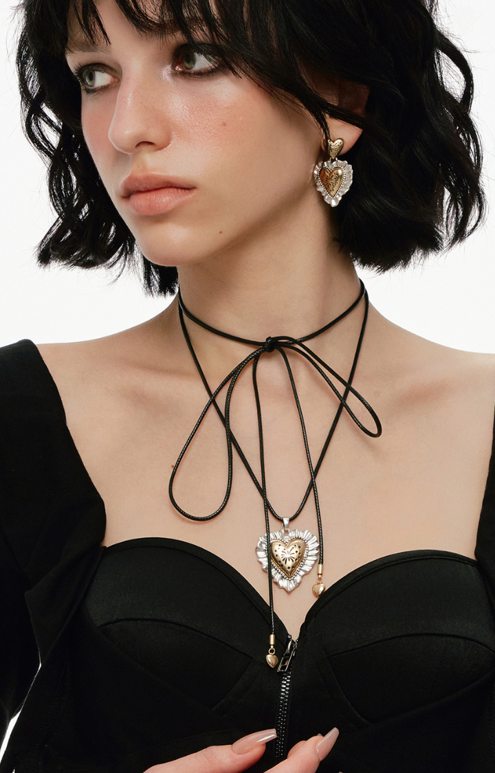 FIREWORK HEART LEATHER CLAVICLE CHAIN