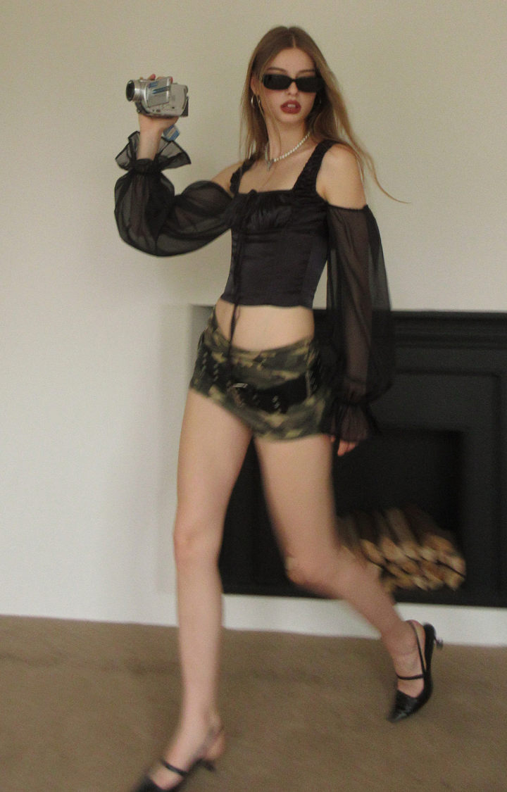 MIDNIGHT SIREN LANTERN-SLEEVE OFF-SHOULDER TOP