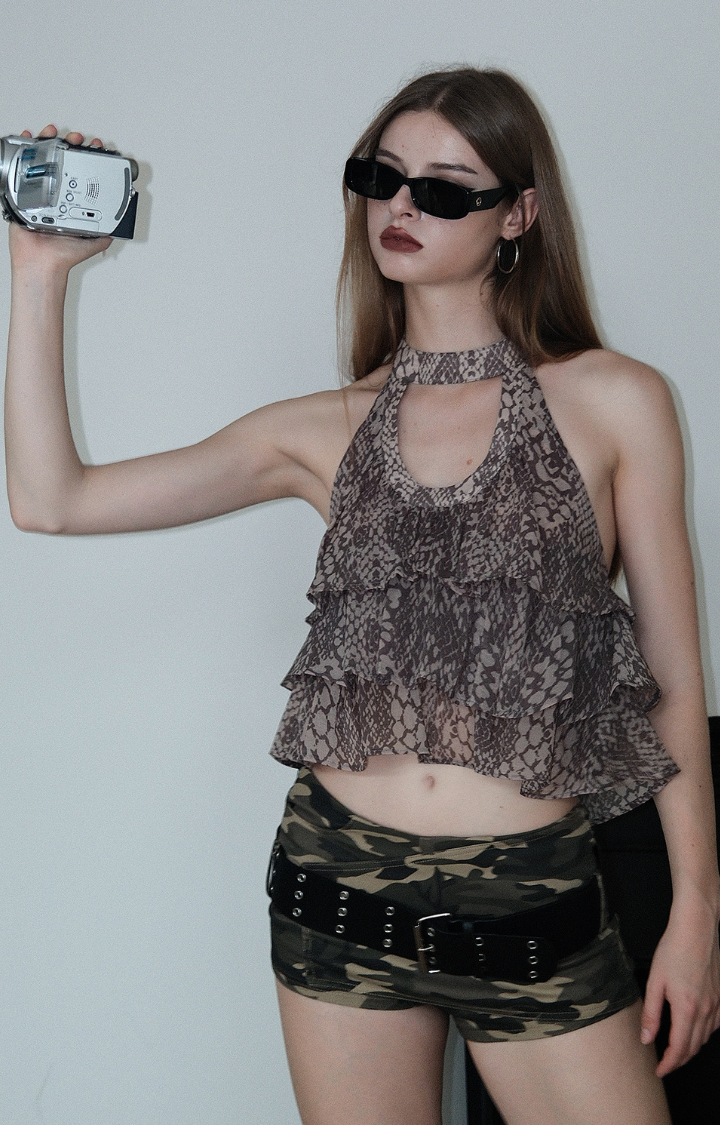 SNAKE PATTERN LAYERED RUFFLE CROP TOP